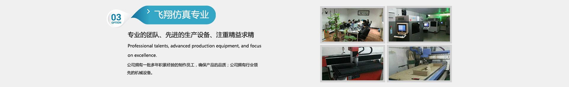 長沙市飛翔仿真模型有限公司專業制作石油化工、水利水電、工業設備、地質地貌、新能源科普、大型機械設備,動態智能演示……等教學展覽仿真模型,是集實訓室裝置及模型設備設計開發、生產制作、銷售服務為一體的專業綜合性企業。公司秉承著專業的設計理念,高級的制作工藝,高品質的服務態度,完善的售后體系,為您提供高端模型產品,力爭滿足客戶的任何需求。